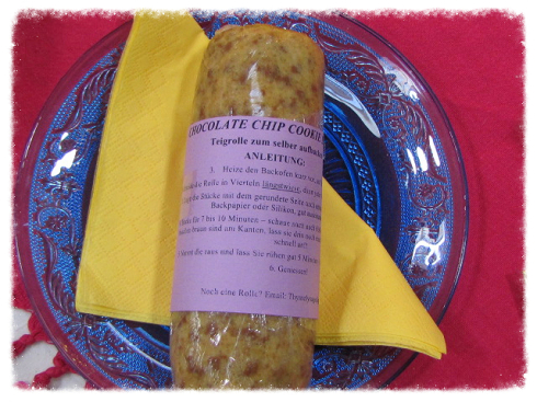 Mag Ihr die Cookies von oben? Hier ist die Teigrolle zum selber aufbacken! Folge die Anleitung und dann habt Ihr frische, hausgebackene Cookies innerhalb von 20 minuten! Die Rolle hält 6 Wochen im Kuhlschrank,